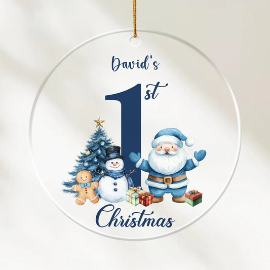 First Christmas - Personalized Acrylic Ornament | Santa's Friends Blue