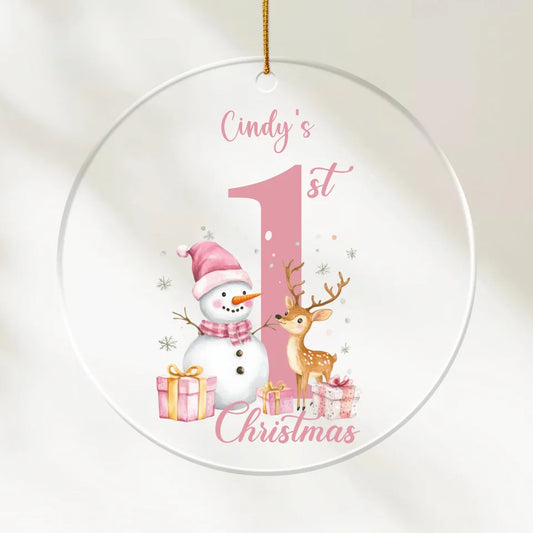 First Christmas - Perosnalized Acrylic Ornament | Pink Snowman