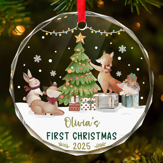 First Christmas (Cute Animals) - Personalized Glass Ornament