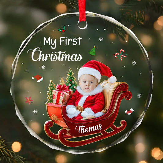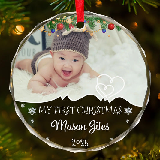 My First Christmas - Personalized Glass Ornament | Upload Your Baby Photo
