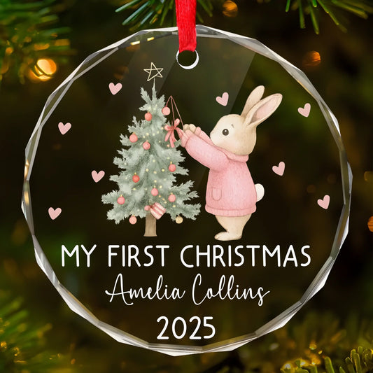 My First Christmas (Rabbit) - Personalized Glass Ornament