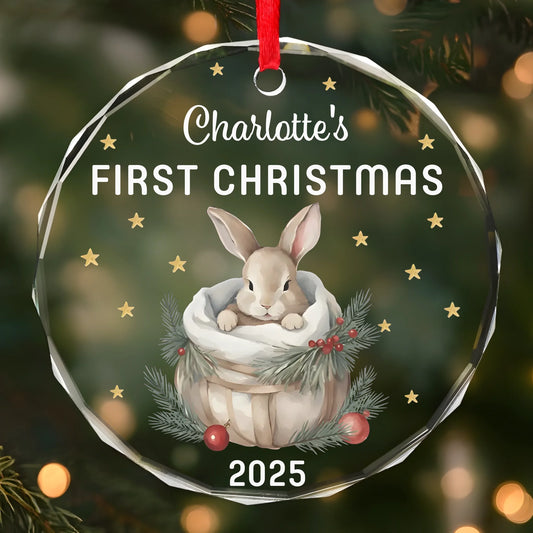 First Christmas (Rabbit) - Personalized Glass Ornament
