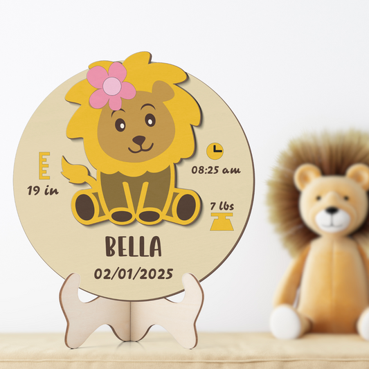 Lion Newborn Baby - Personalized Wood Sign (2-Layer)