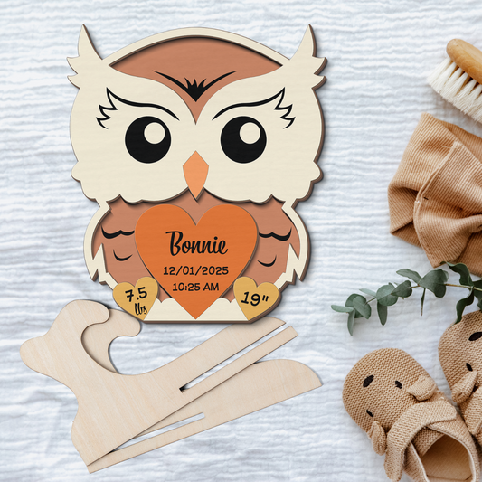 Owl Newborn Baby - Personalized Wood Sign (2-Layer)