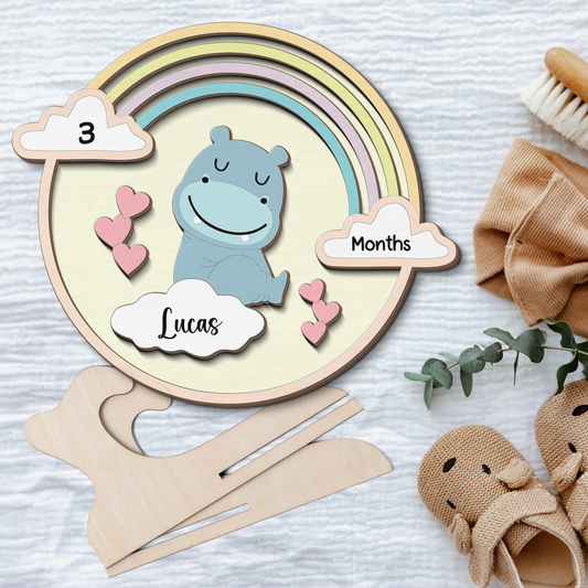 Rainbow Hippo Newborn Baby - Personalized Wood Sign (2-Layer)