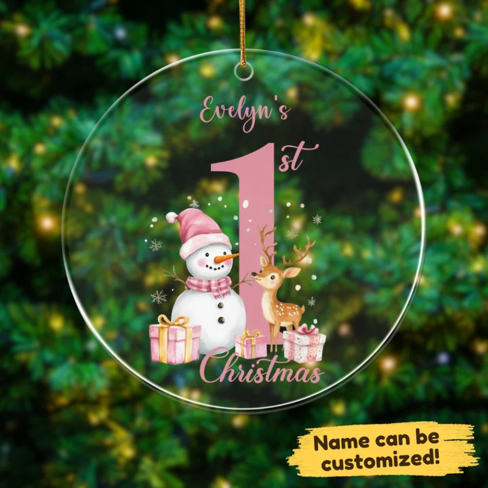 First Christmas - Perosnalized Acrylic Ornament | Pink Snowman