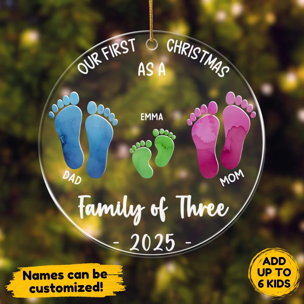 Celebrate your family's first Christmas together with this heartwarming ornament. Personalize it with names of up to six children, along with the parents, to capture this special moment for a family of three to eight.